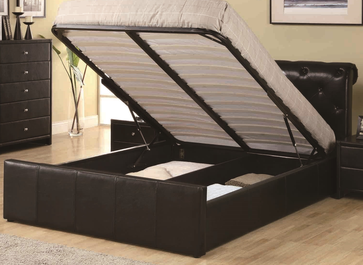 For classic styling and extra storage in your bedroom check out the Chester Frame with Gas Lift. When you need more storage in the bedroom check out the gas lift option. It has a much larger usable capacity than a base with standard drawers. Drawers are restricted by their size however gas lift frames have a greater single area capacity.